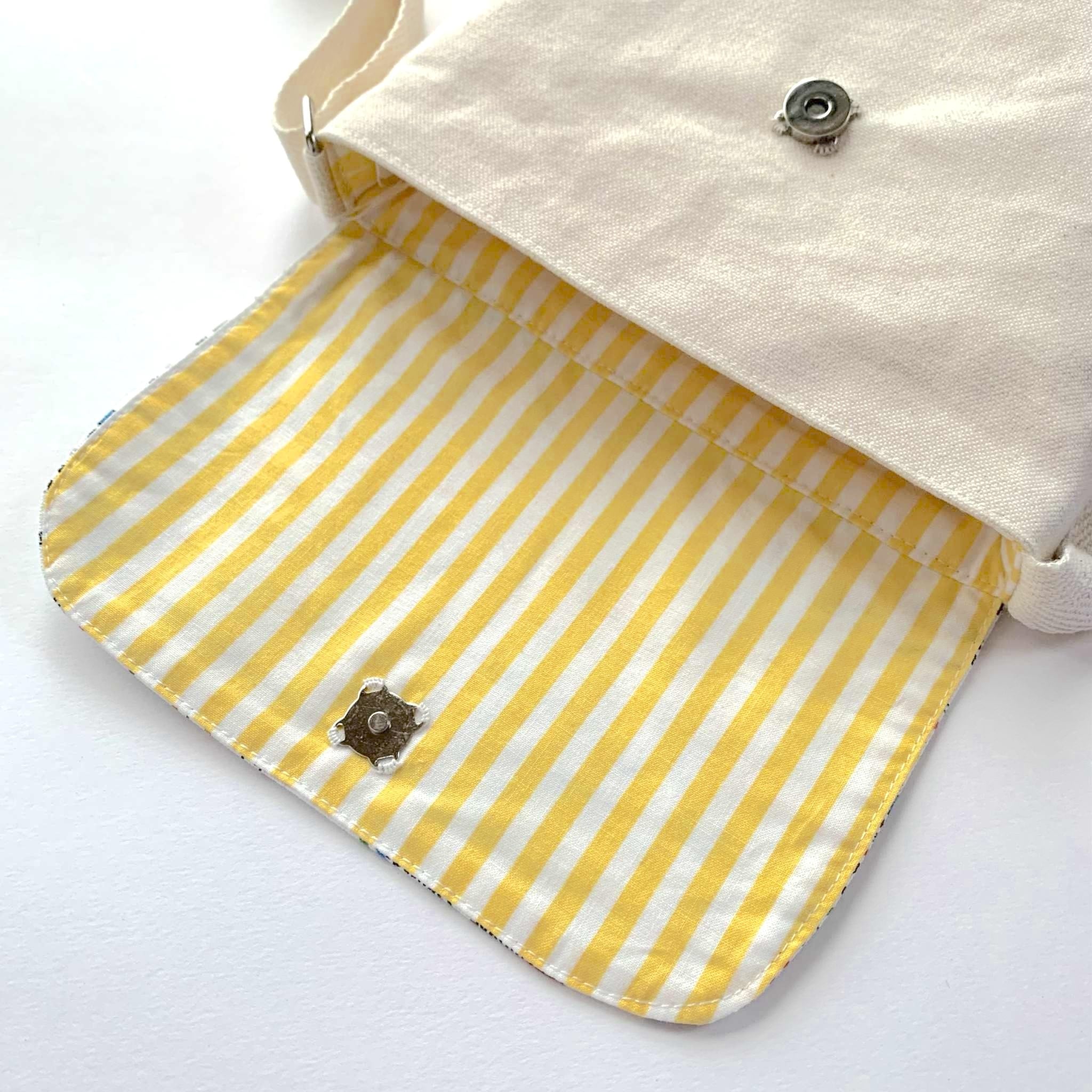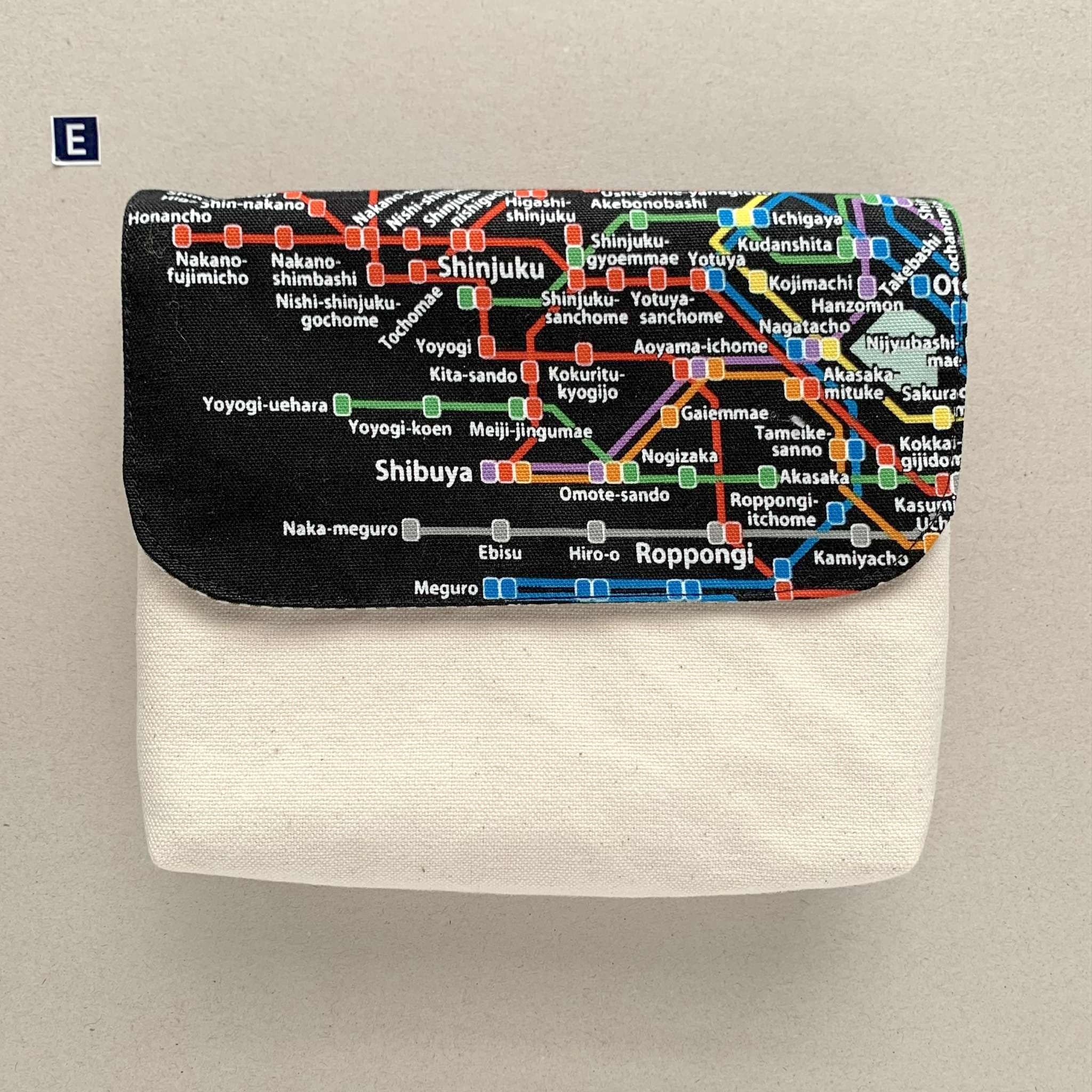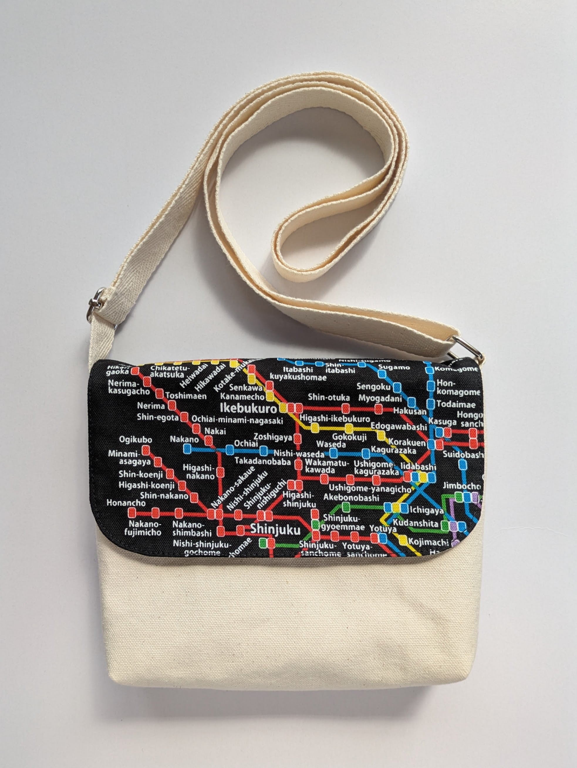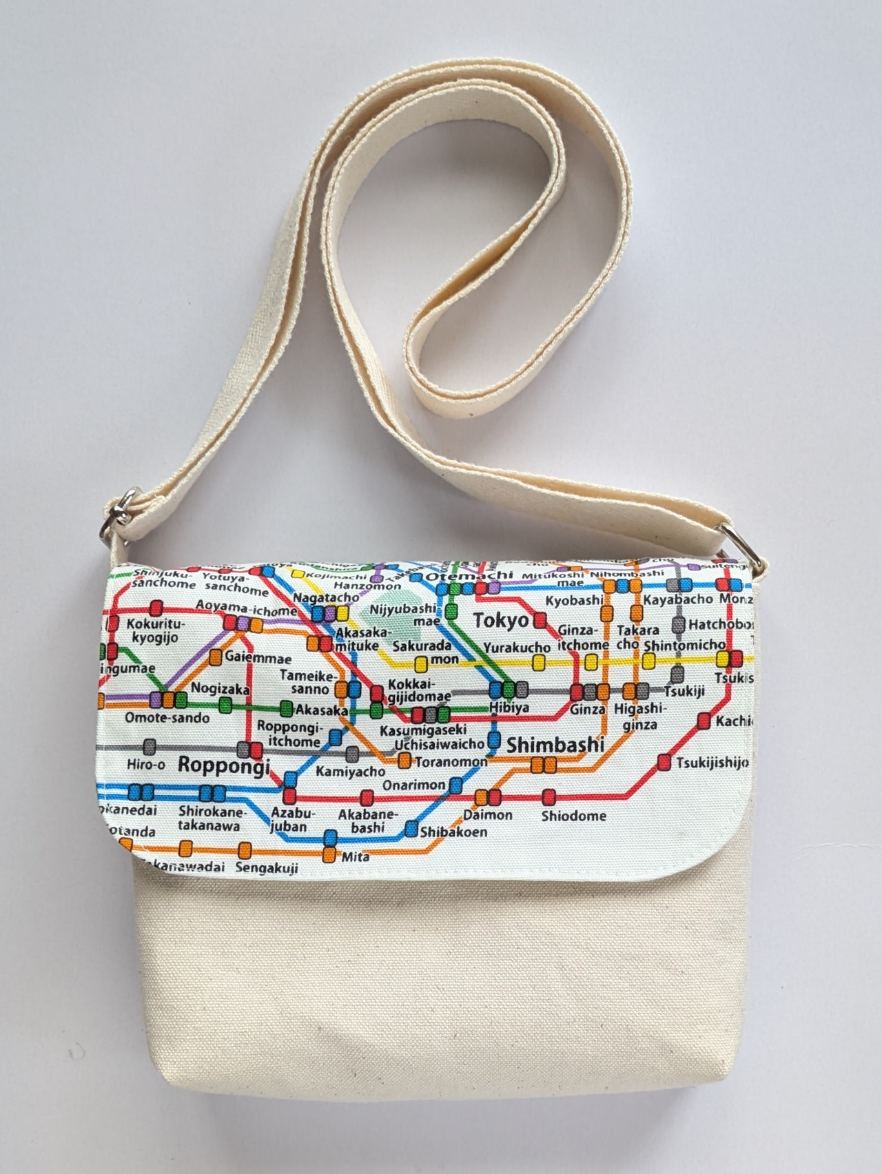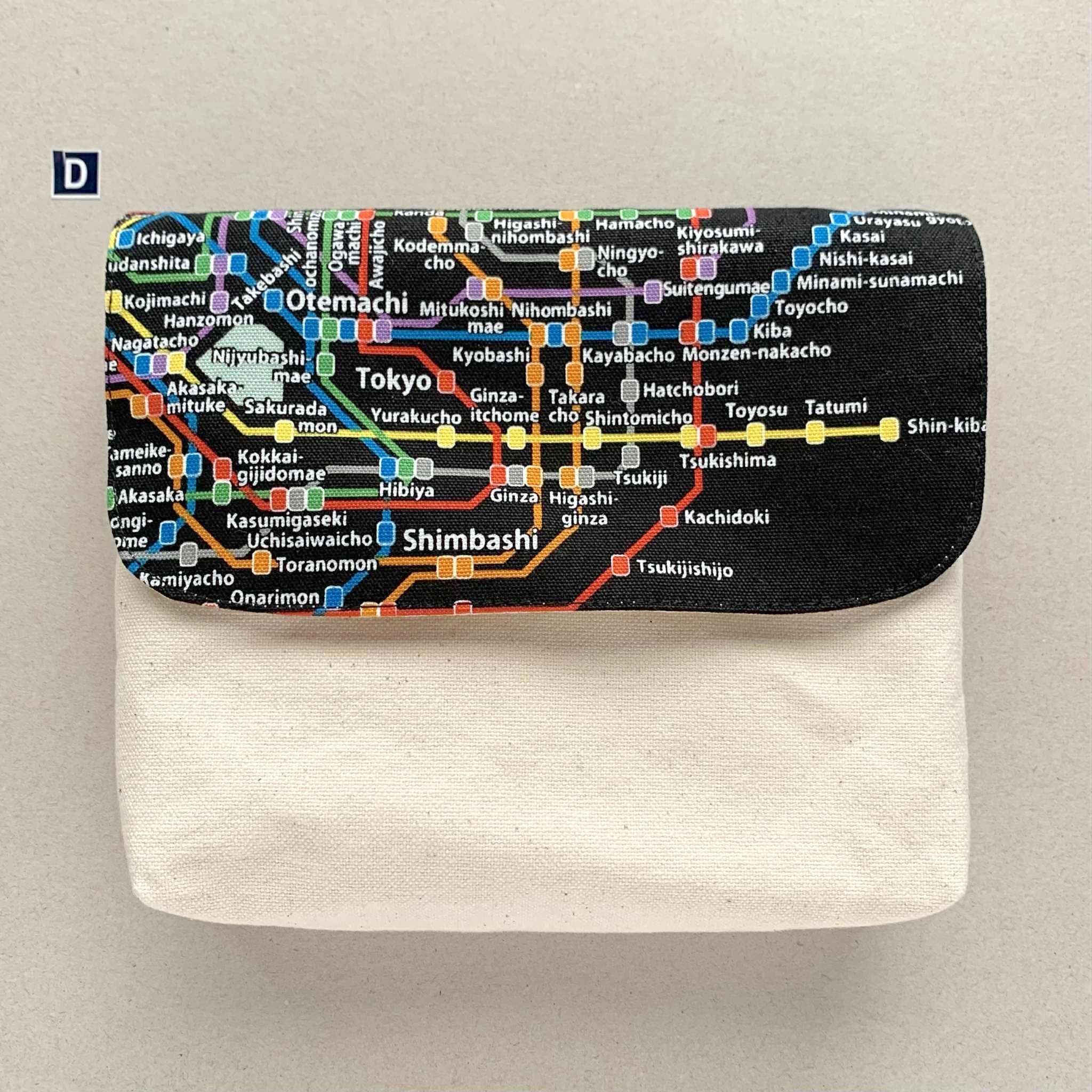 フラップ部分に東京メトロの路線図柄の生地を使ったポシェット