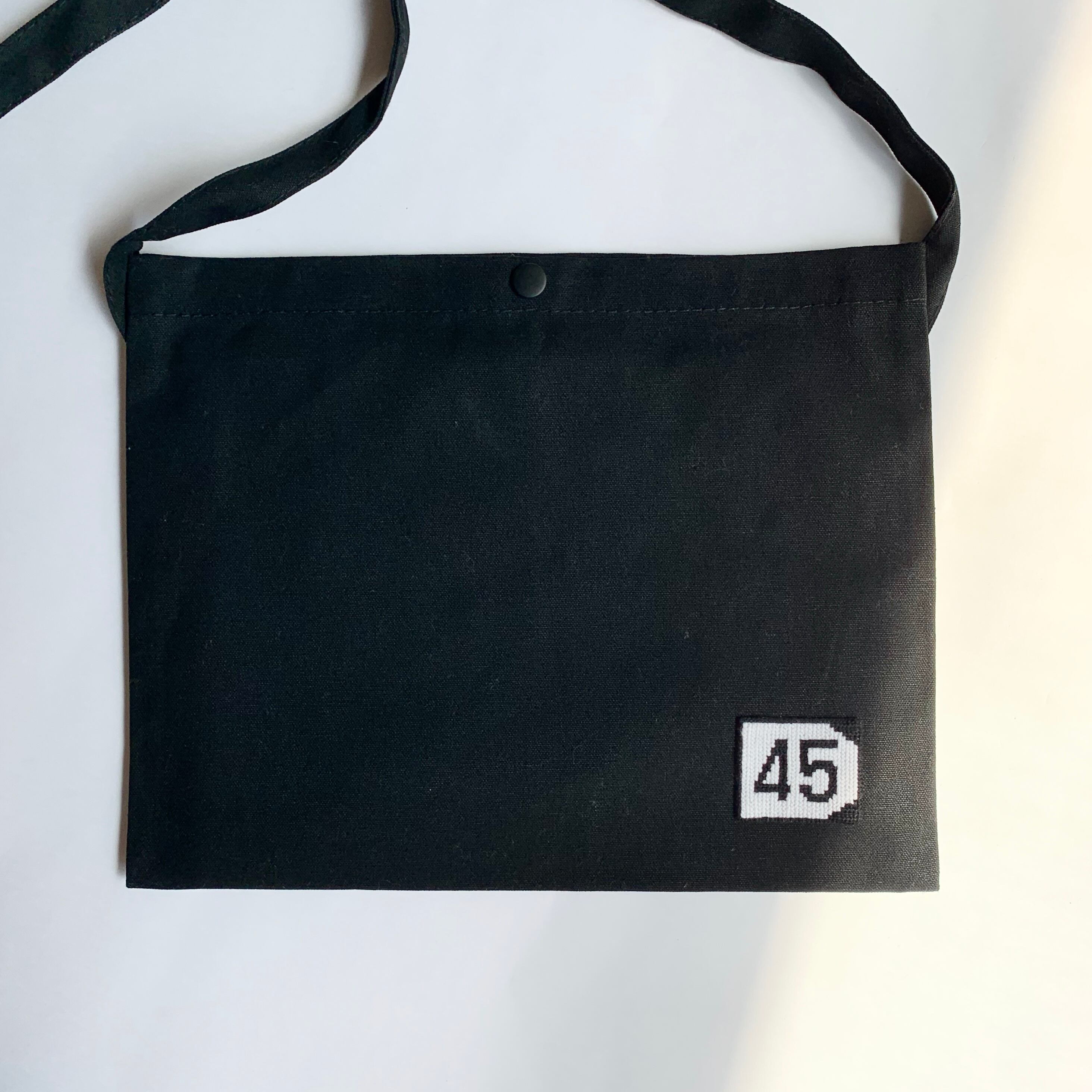 鉄道標識をモチーフにひとつひとつ手刺繍したワッペンをキャンバスサコッシュにつけました