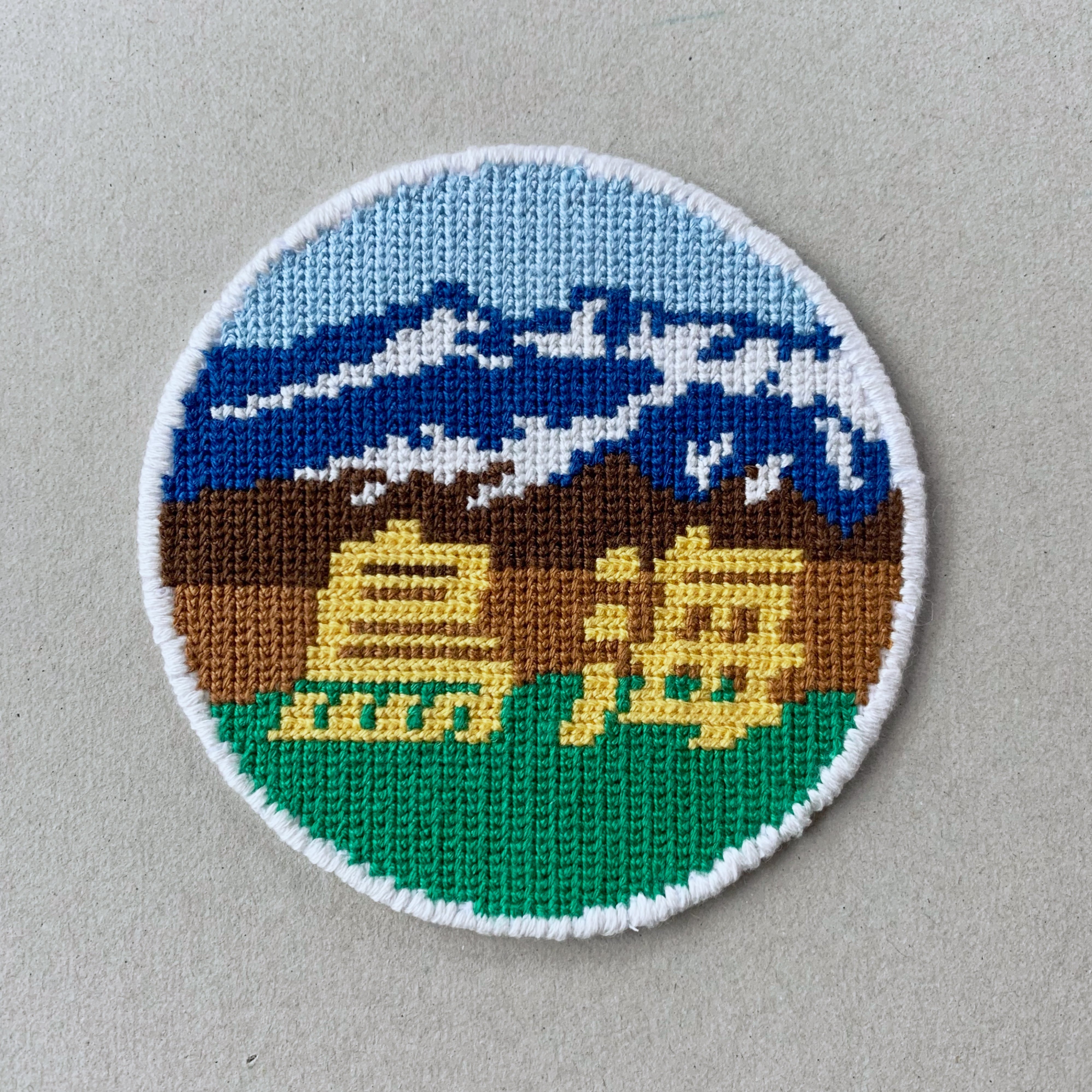 ブルートレインのヘッドマークを図案におこし、ひとつひとつ手刺繍でワッペンに仕立てました。接着剤で貼るか、縫いつけてご使用ください。